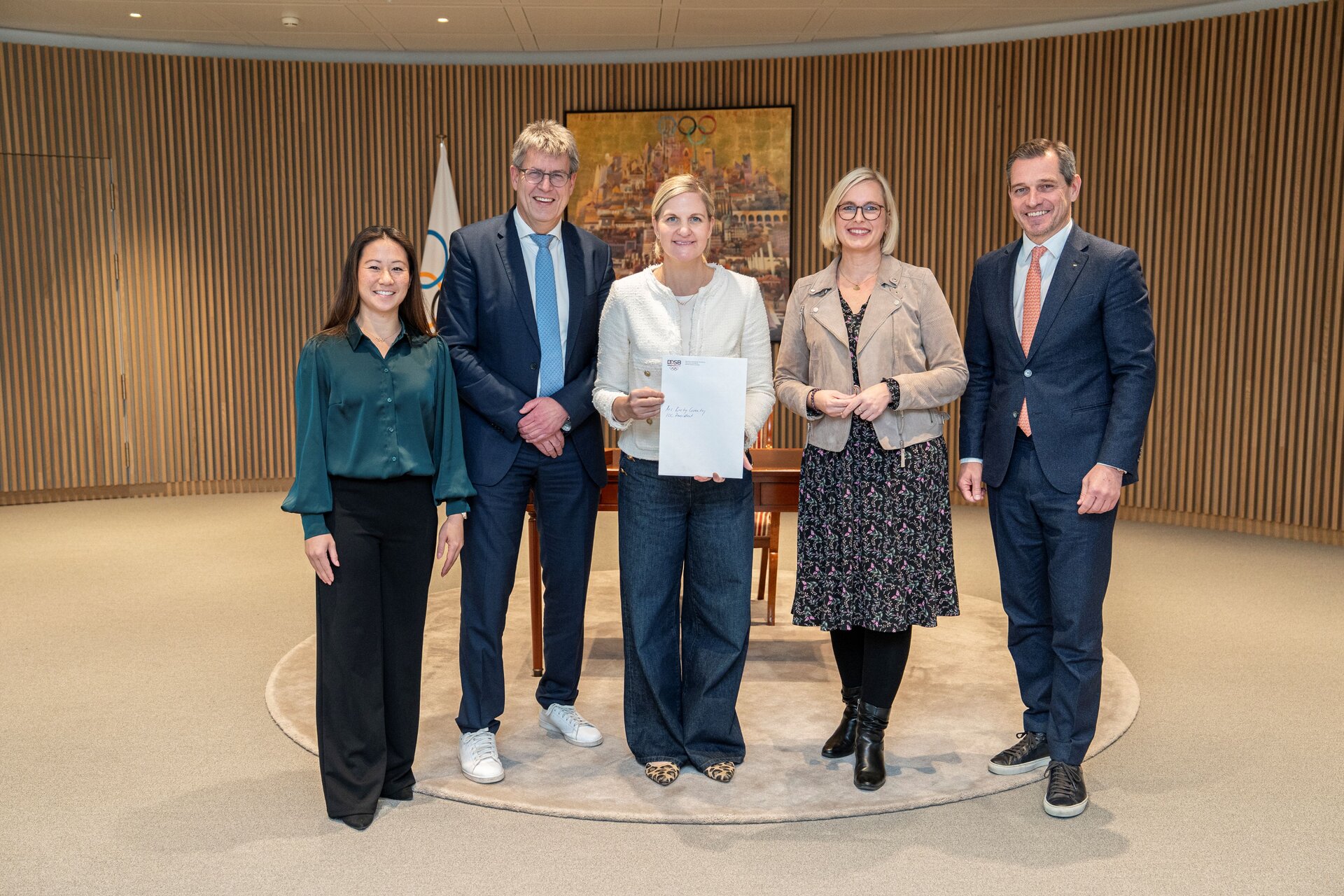 Eine Delegation des Deutschen Olympischen Sportbundes um Präsident Thomas Weikert sowie die deutschen IOC-Mitglieder Kim Bui und Michael Mronz hat gemeinsam mit der Staatsministerin für Sport und Ehrenamt, Dr. Christiane Schenderlein, am Freitag in Lausanne (Schweiz) bei einem Besuch beim Internationalen Olympischen Komitee (IOC) die Aufnahme in den Continuous Dialogue beantragt.