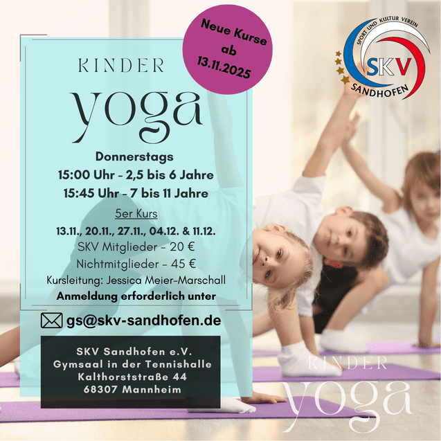 Am Donnerstag 13.11.2025 starten die neuen Kinder-Yoga Kurse.
