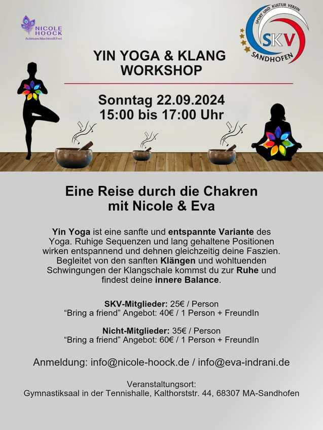 Probier es doch einfach mal aus bei unserem Schnupperyoga am 18.09.25 oder am 25.09.25. Bitte beachte, dass die Teilnahmeplätze begrenzt sind, deshalb ist eine Anmeldung zum kostenlosen Schnupperkurs erforderlich!