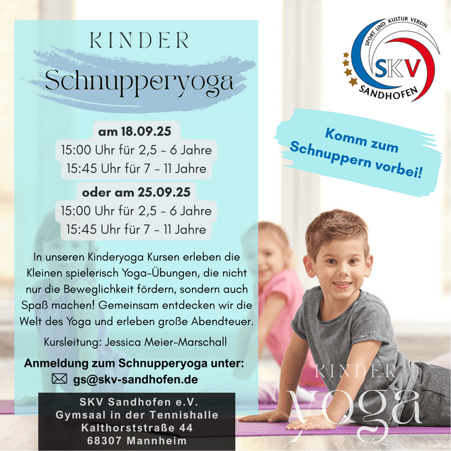 Am Donnerstag 02.10.2025 starten die neuen Kinder-Yoga Kurse.