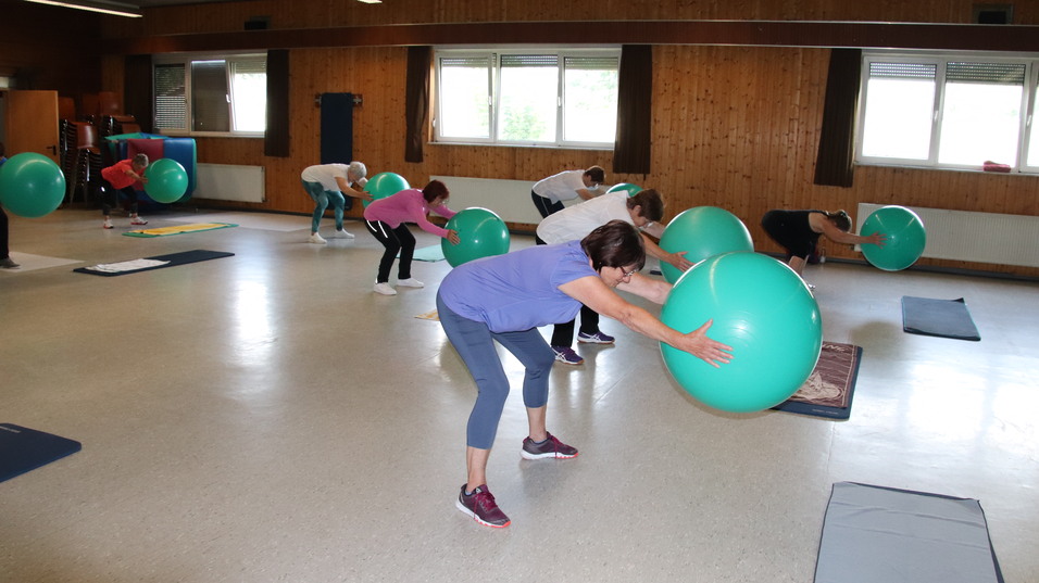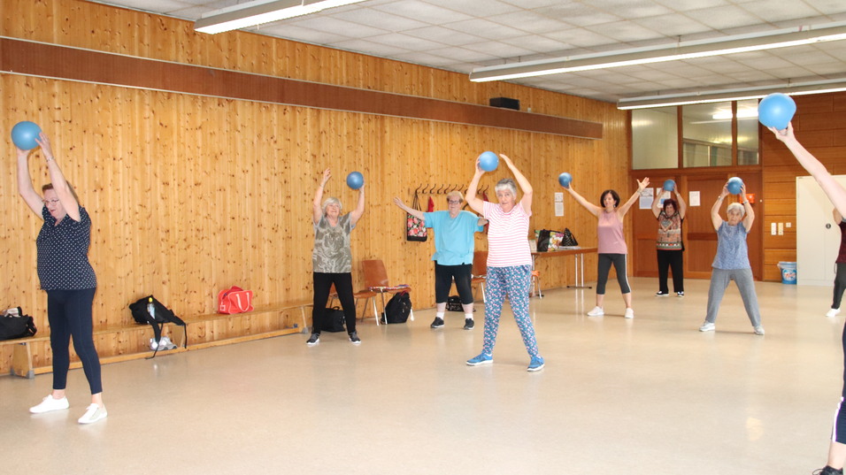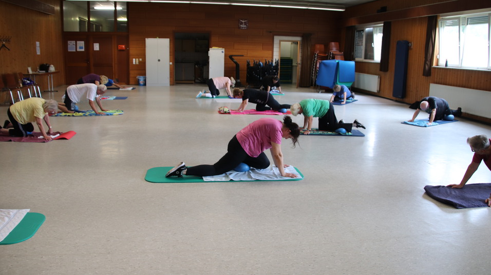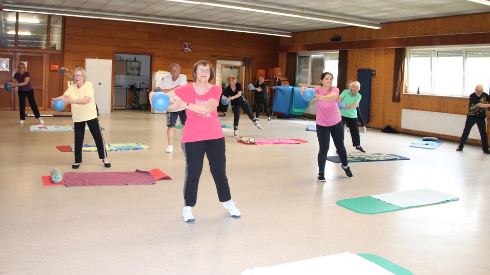 In einem bunten und vielfältigen Übungsprogramm setzen wir die unterschiedlichsten Kleingeräte wie z. B. Theraband, Stab, Pezziball, Redondoball und Hantel ein. Es lassen sich erstaunlich viele –auch anstrengende Übungen- im Sitzen trainieren! Der Spaß und die Freude an der Bewegung kommen dabei nicht zu kurz.